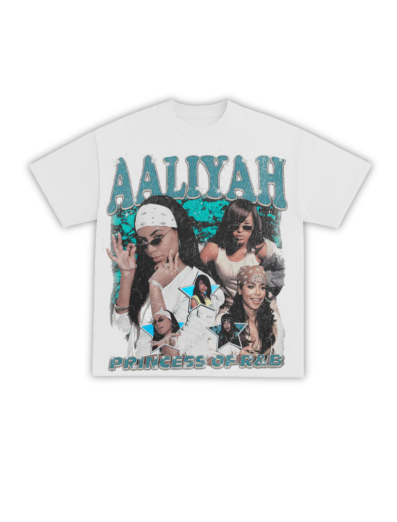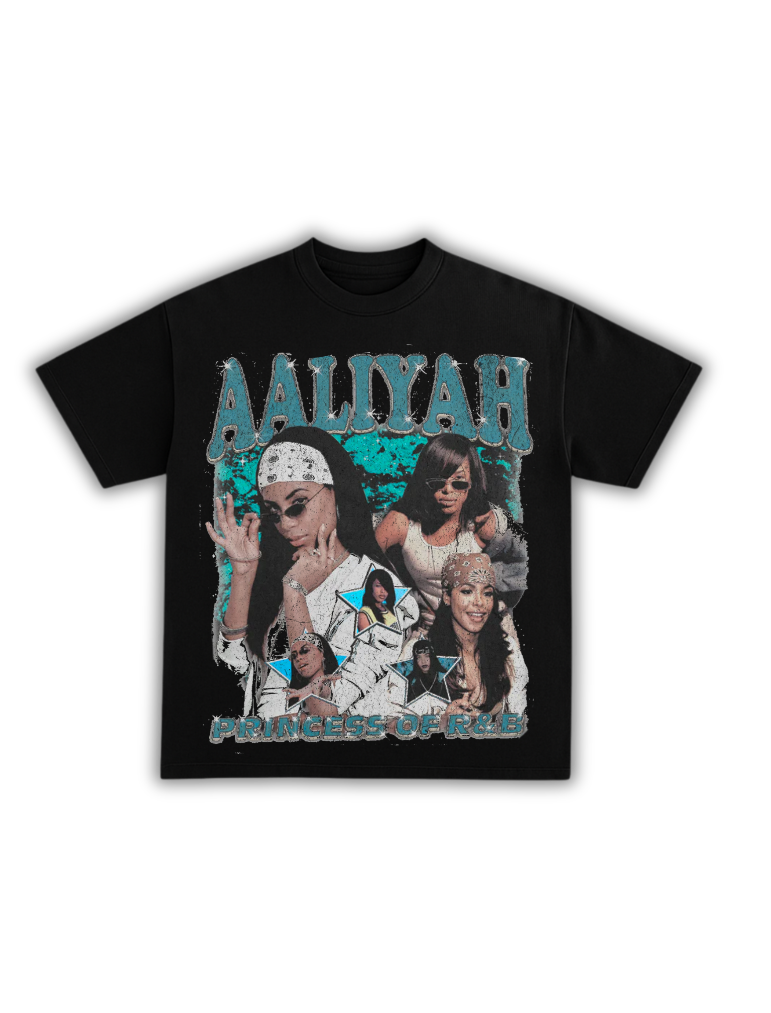 🔥 Aaliyah Vintage Tee – Midnight & Cream. Heavyweight, garment-dyed, and smooth like the Princess of R\&B herself. 🎤 Celebrate Aaliyah’s timeless style and unmatched vibe—because real icons live forever in the music and the culture.