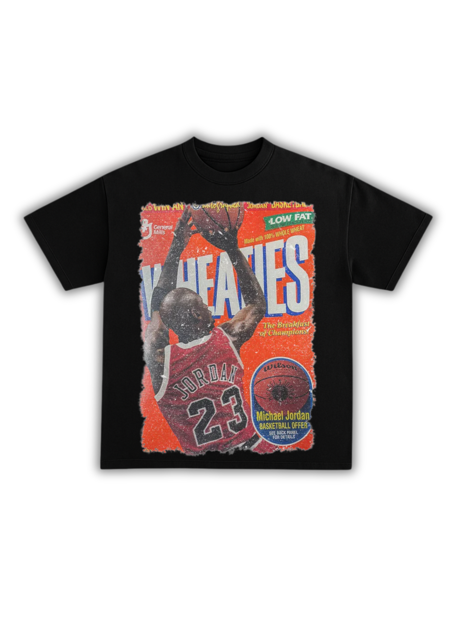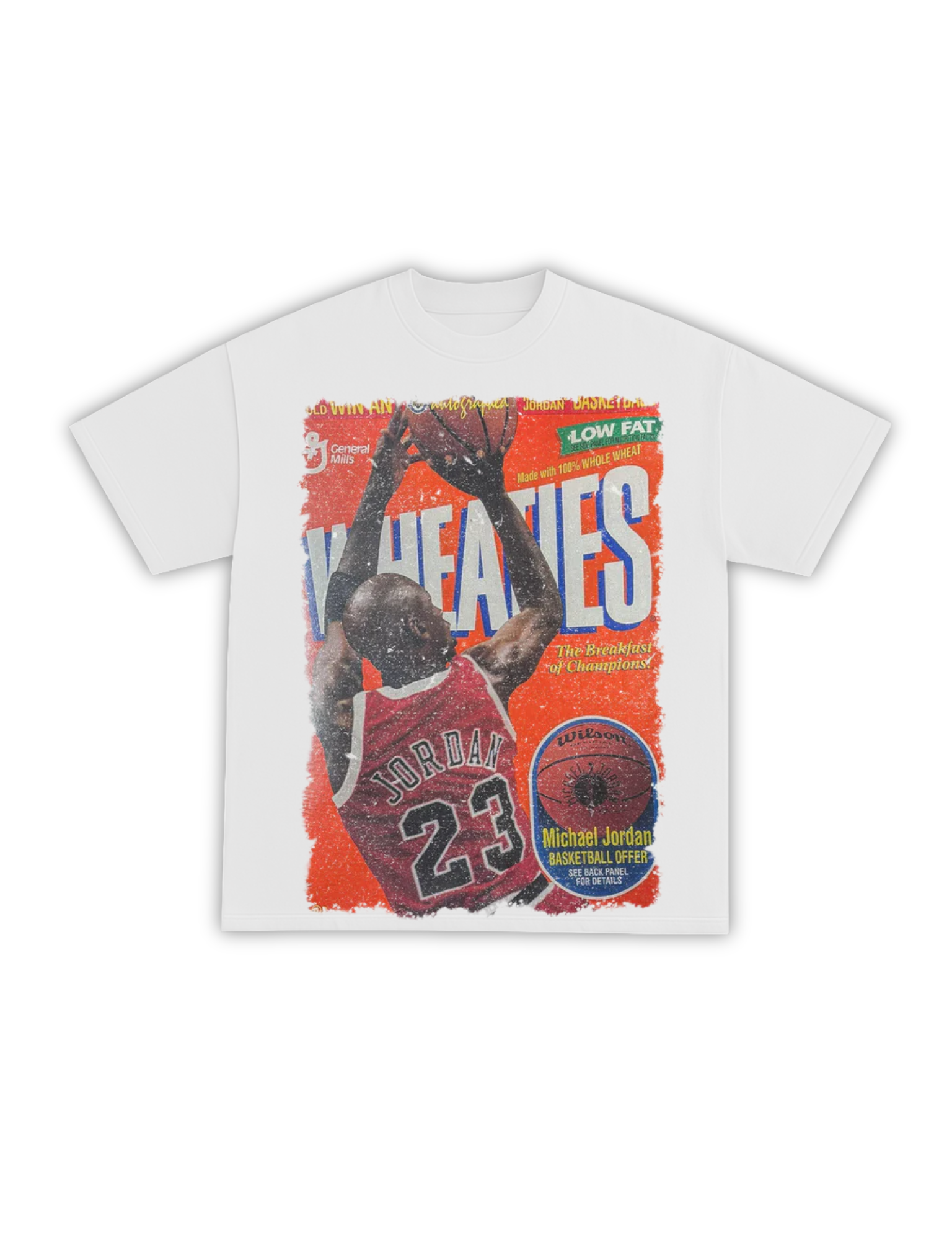 🔥 Wheaties Michael Jordan 1998 Vintage Tee – Cereal Box Gold & Championship Red. Heavyweight, garment-dyed, and dripping with late-’90s GOAT energy. 🏀 Celebrate MJ’s iconic ’98 Finals run and his legendary Wheaties cover—because real champions don’t just eat breakfast, they own the whole box.